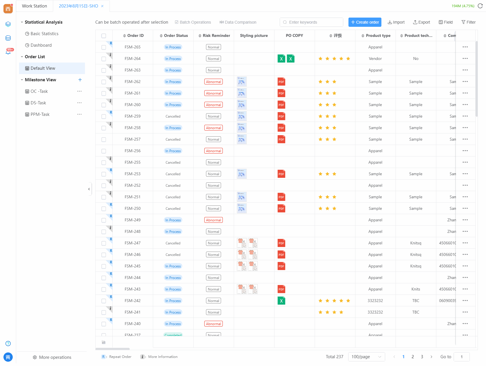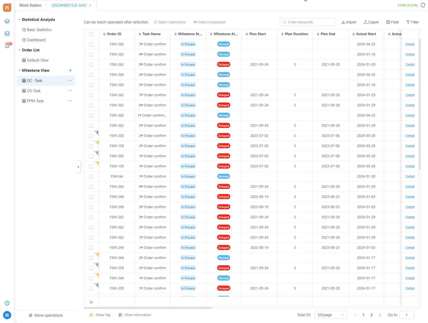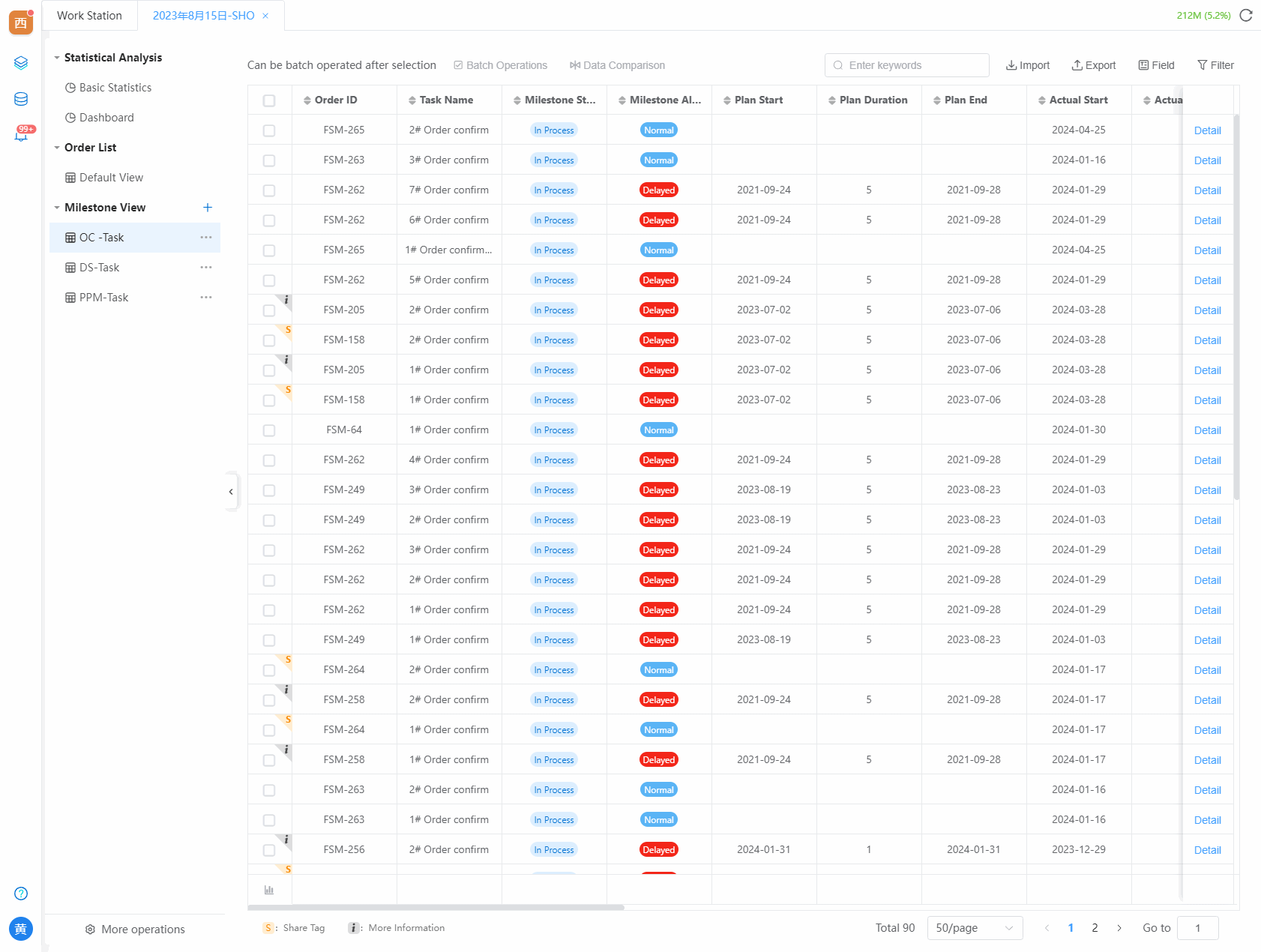Users with the permission to bulk import work orders can perform bulk operations from the order list, facilitating the rapid importation of data from offline or other systems into SCCS.