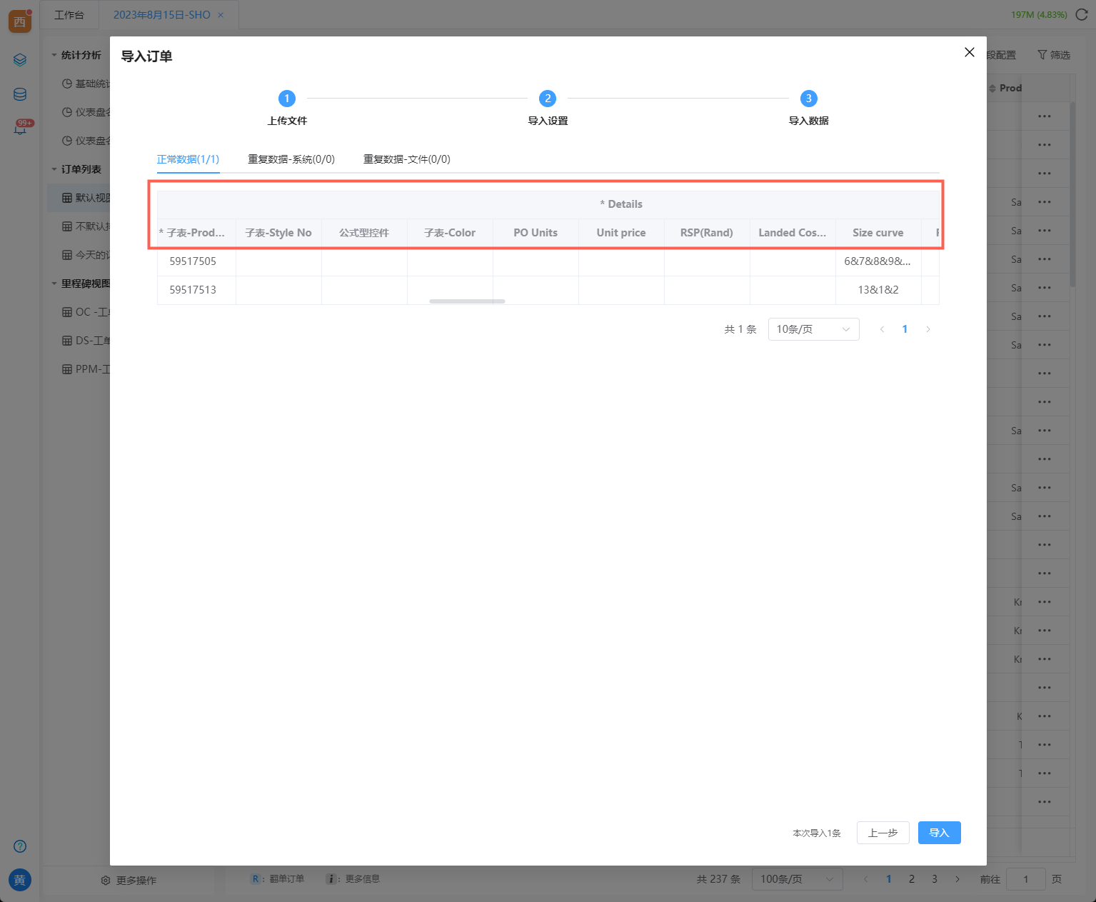 PDF导入订单,PDF文件中Product Details模块支持导入至子表中
