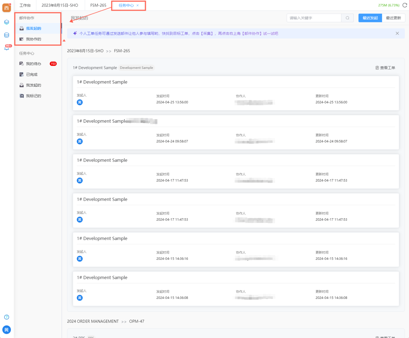 4、任务中心增加我发起的邮件协作、我协作的任务
